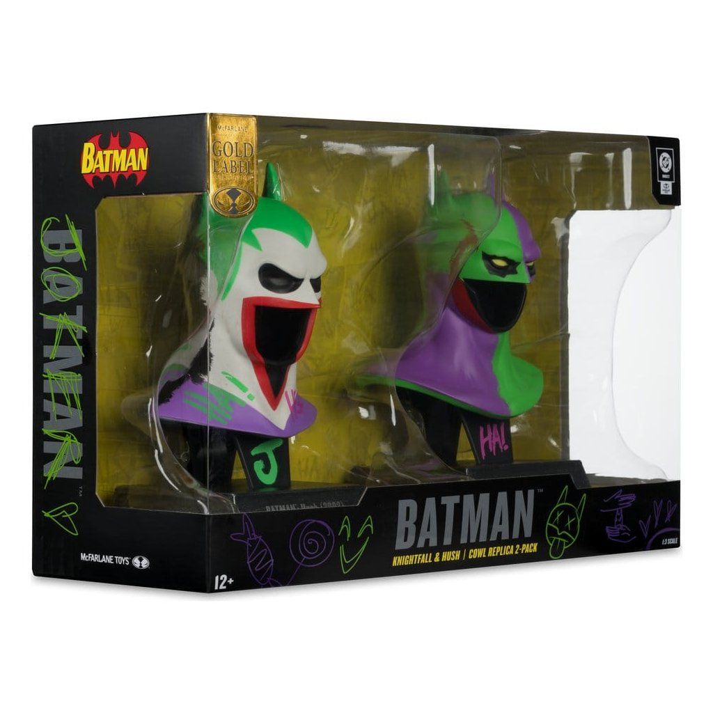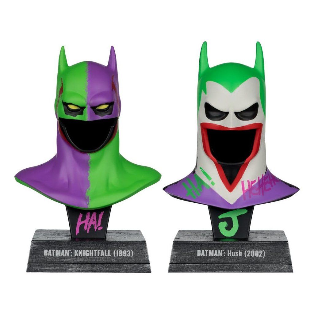 Batman DC Direct Mini Replica 1/3 – 2-pack Cowls Hush & Knightfall (Jokerized, Gold Label) – 18 cm