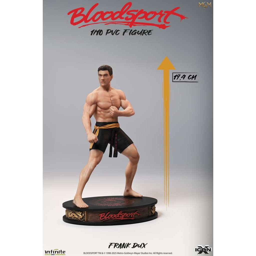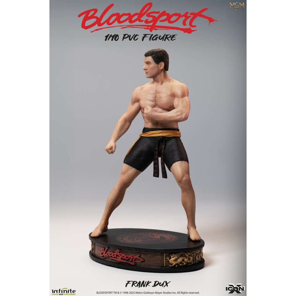 Soška Frank Dux je postavena v bojové pozici na kruhovém podstavci s logem filmu Bloodsport.