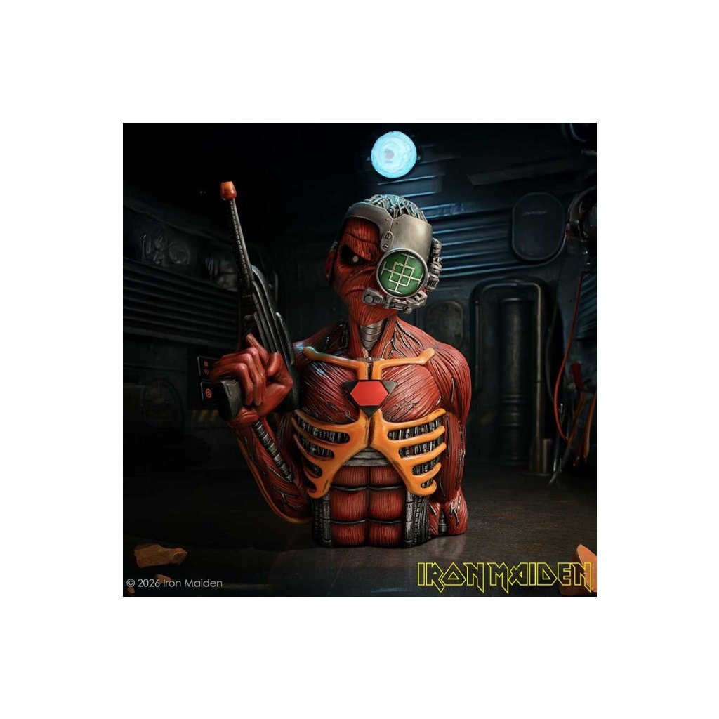 Sběratelská busta inspirovaná albem Somewhere in Time od legendární britské kapely Iron Maiden. Futuristická podoba Eddieho – kybernetického válečníka z dystopického města – patří mezi nejikoničtější vizuály v historii heavy metalu.