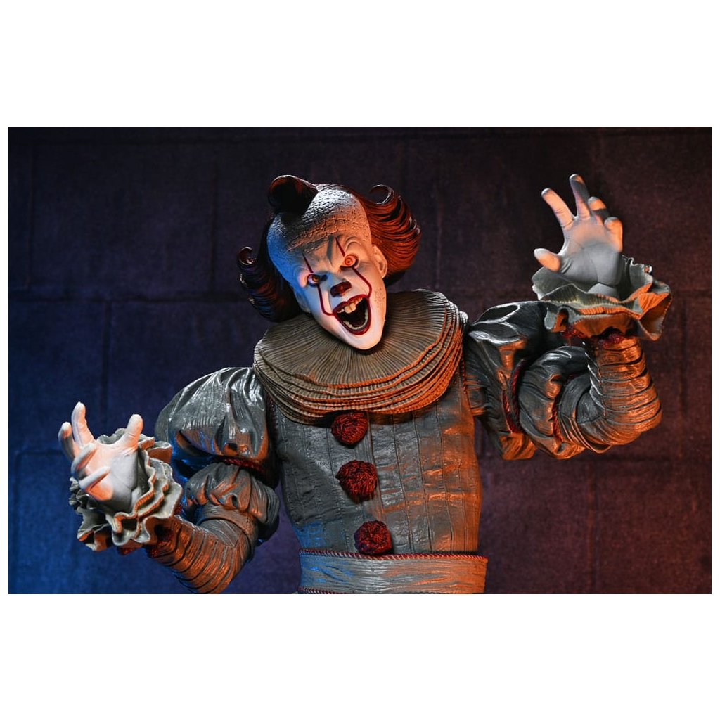 Sběratelská figurka Bob Gray jako Pennywise (18 cm) z IT: Welcome to Derry od NECA. Vyměnitelné části, jevištní doplňky a paruka. Perfektní pro hororové fanoušky.