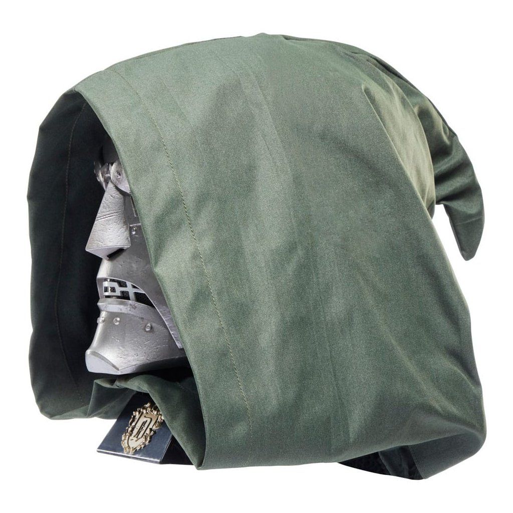 Textilní doplňky: Součástí balení je charakteristická zelená látková kápě, která helmě dodává autentický majestátní vzhled.