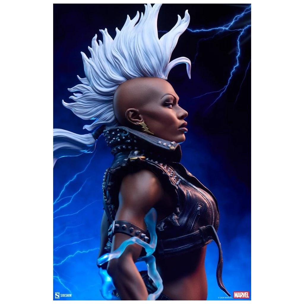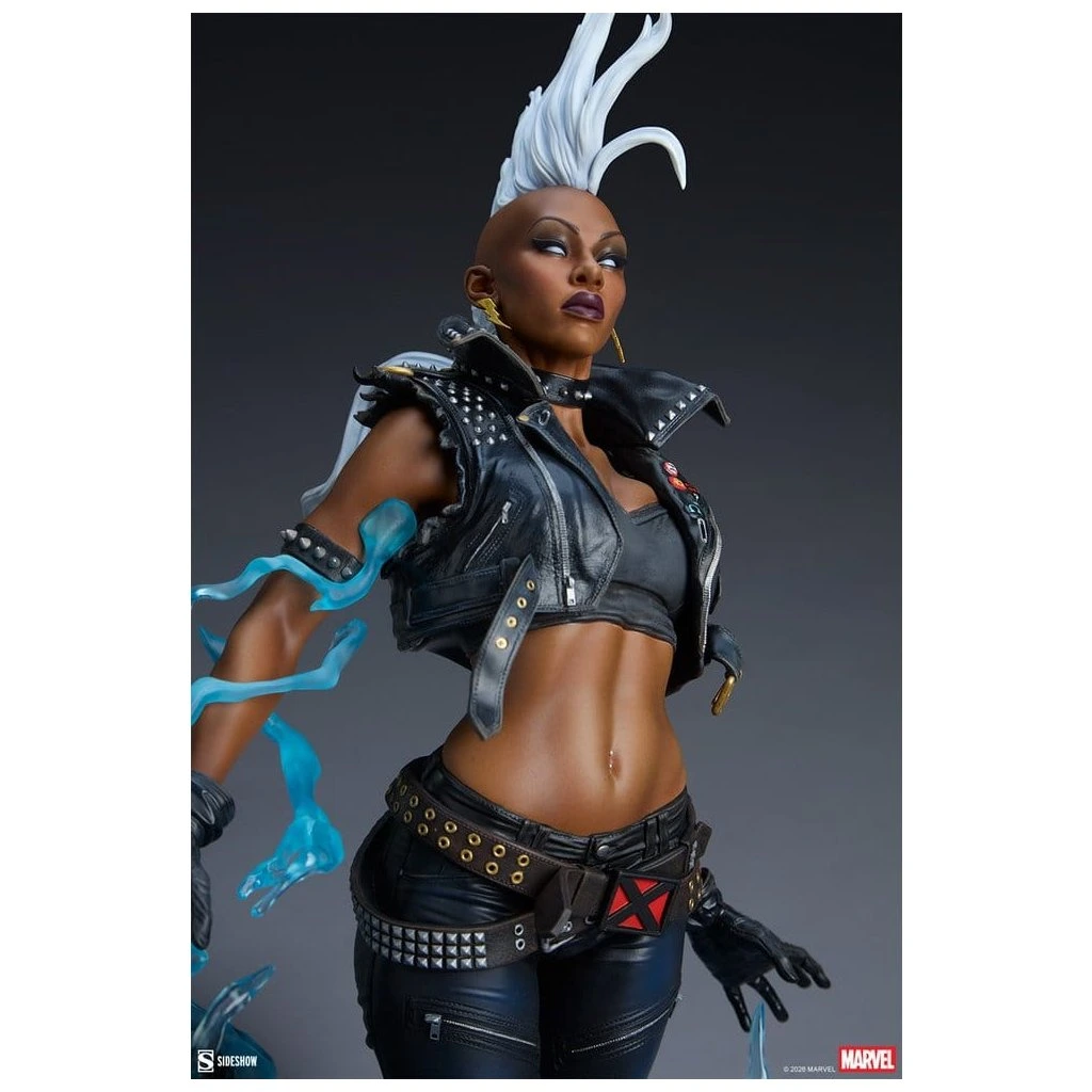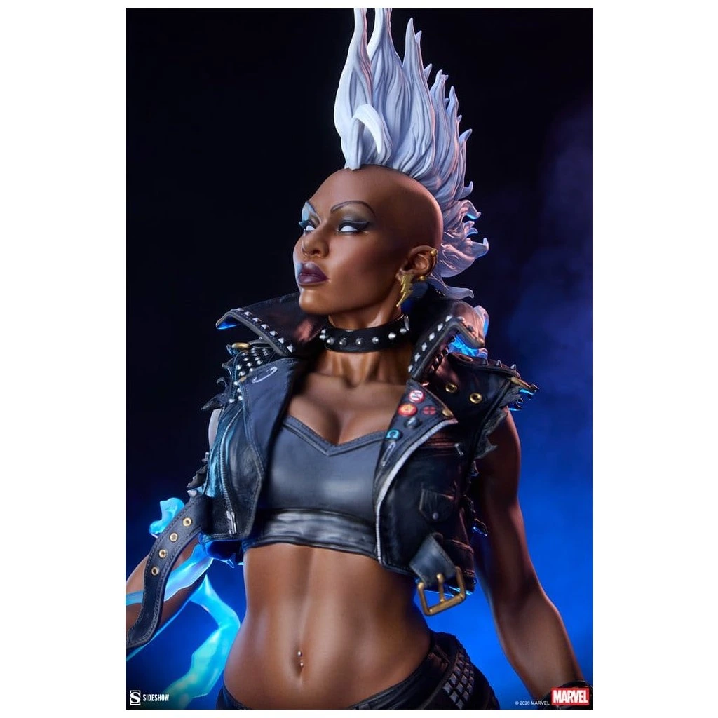 Ororo Munroe, známá jako Storm, prošla v 80. letech jednou z nejvýraznějších vizuálních proměn v historii komiksu. Odhození klasického pláště a přijetí kůže, cvočků a číra (mohawku) symbolizovalo její vnitřní sílu a nezávislost jako vůdkyně X-Menů. Tato soška tuto transformaci oslavuje do nejmenšího detailu – od zavíracích špendlíků na vestě až po grunge make-up.