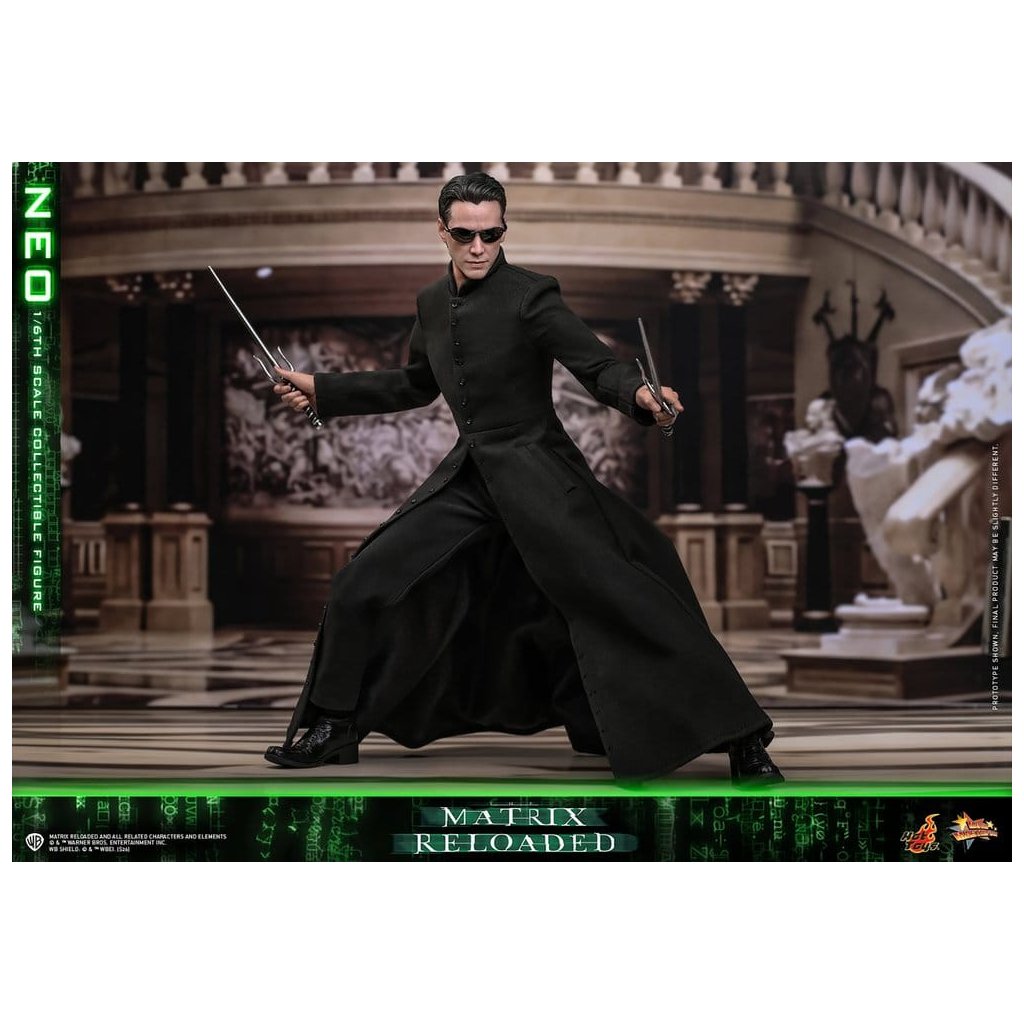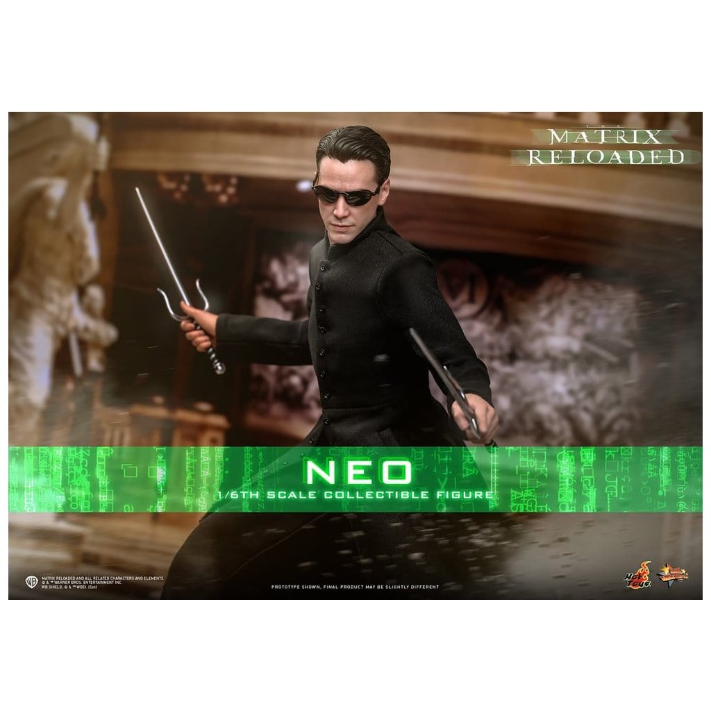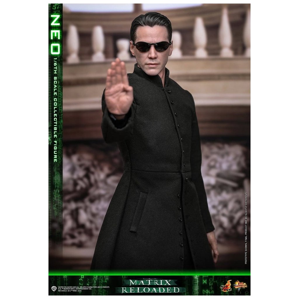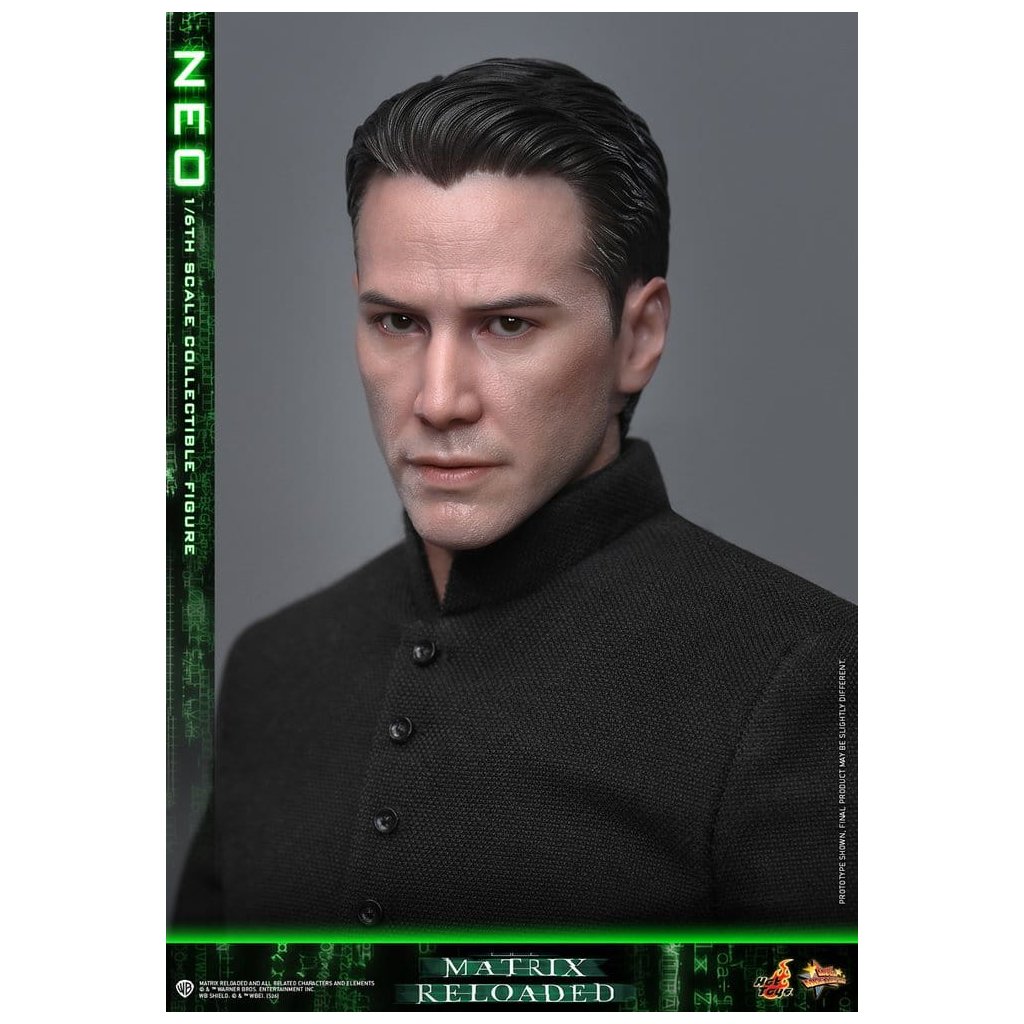 Společnost Hot Toys přináší mimořádně detailní figurku založenou na podobě Keanu Reeves, která věrně zachycuje jeho filmový vzhled. Precizně modelovaná hlava s realistickou texturou pleti a systémem rolling eyeballs umožňuje nastavit přesný směr pohledu a vytvořit ikonické Neoovy výrazy.