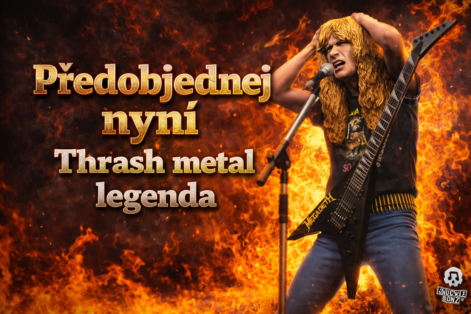 Připravte se na symfonii destrukce ve vaší sbírce! Tato prémiová sběratelská soška typu „Fine-Art“ v měřítku 1/9 představuje samotného Davea Mustaina v jeho nezaměnitelné póze. Studio KnuckleBonz vytvořilo v rámci druhé edice Rock Iconz mistrovské dílo, které není jen obyčejným modelem, ale ručně odlévaným a detailně malovaným artefaktem, který zachycuje syrovou energii zakladatele Megadeth.