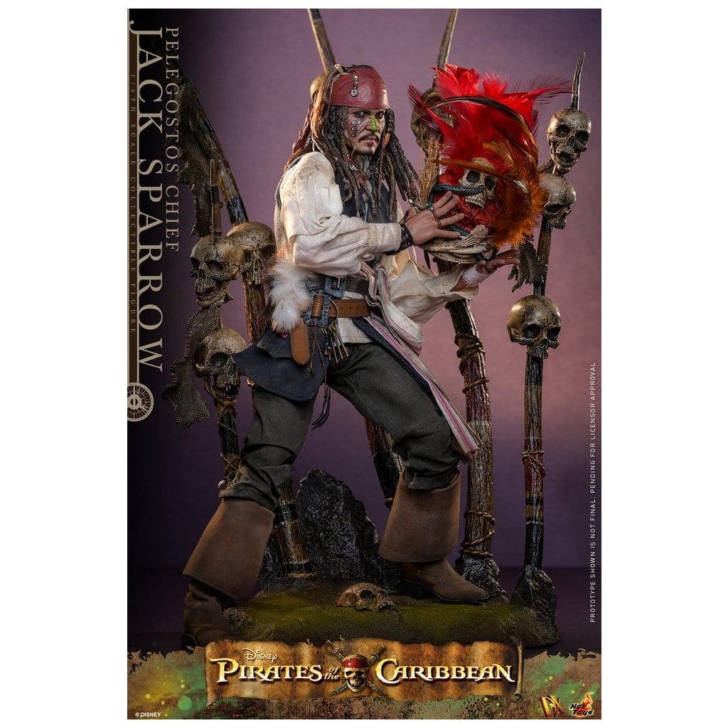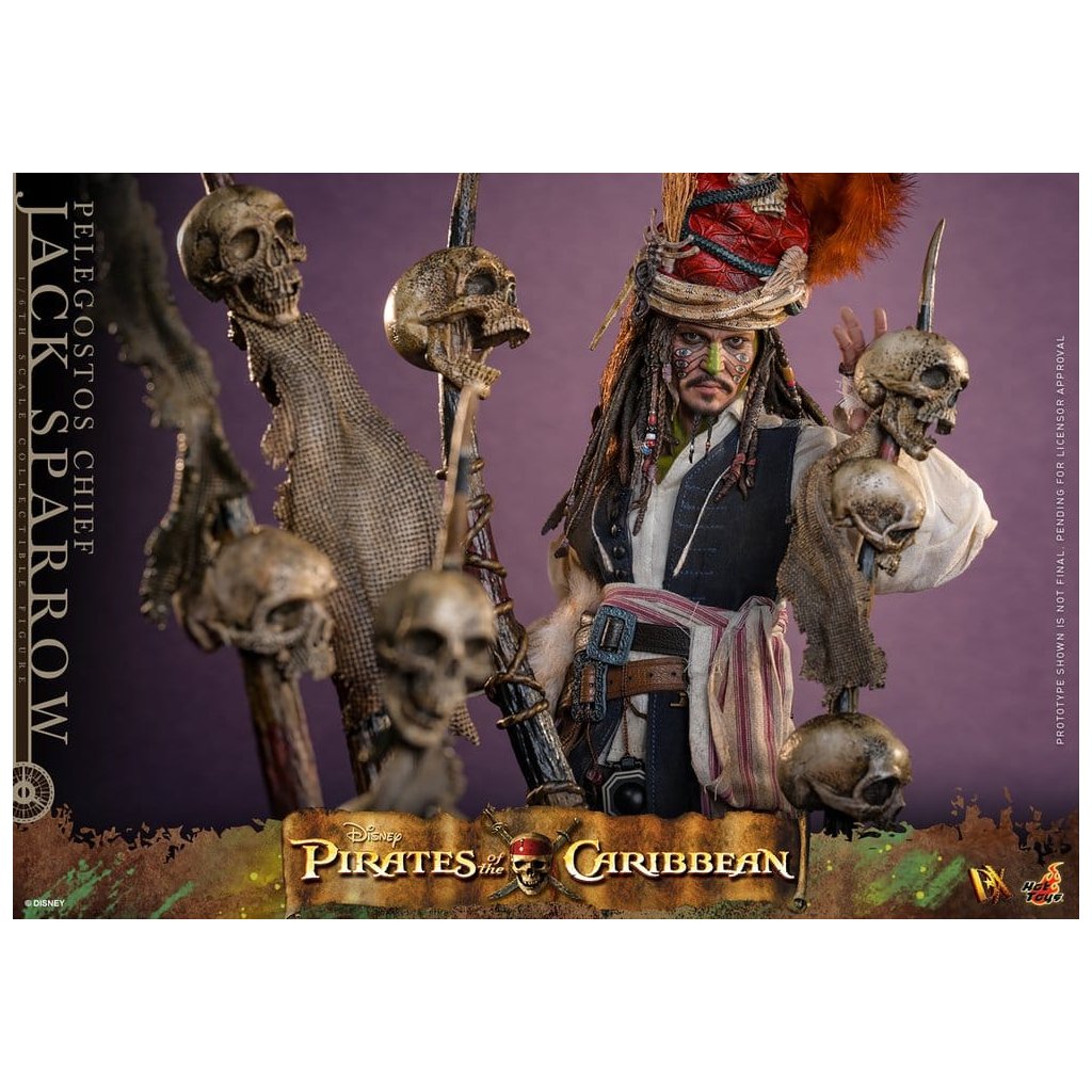 Sideshow a Hot Toys představují exkluzivní DX figurku inspirovanou filmem Pirates of the Caribbean: Dead Man's Chest. V této ikonické scéně se kapitán Jack Sparrow ocitá na ostrově Isla de Pelegostos, kde je domorodým kmenem mylně považován za božstvo a korunován náčelníkem – ovšem s úmyslem rituální oběti.