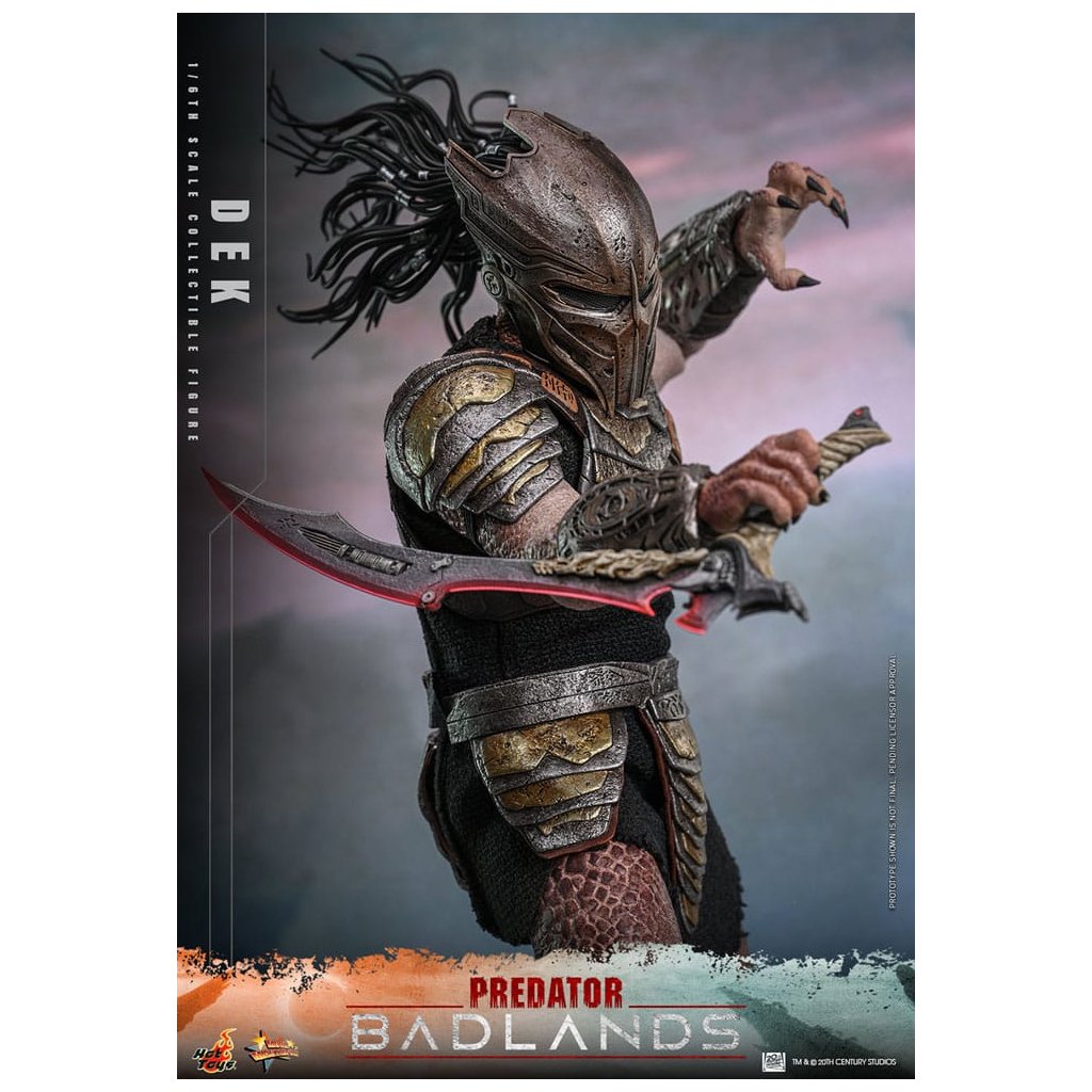Ponořte se do brutálního světa Yautjů s vysoce detailní Movie Masterpiece figurkou Dek od Hot Toys. Tato 30 cm vysoká sběratelská akční figurka přináší hrdinu z komiksu Predator: Badlands – mladého predátora, který byl vyhnán ze svého klanu a bojuje o čest, přežití a návrat mezi své druhy.