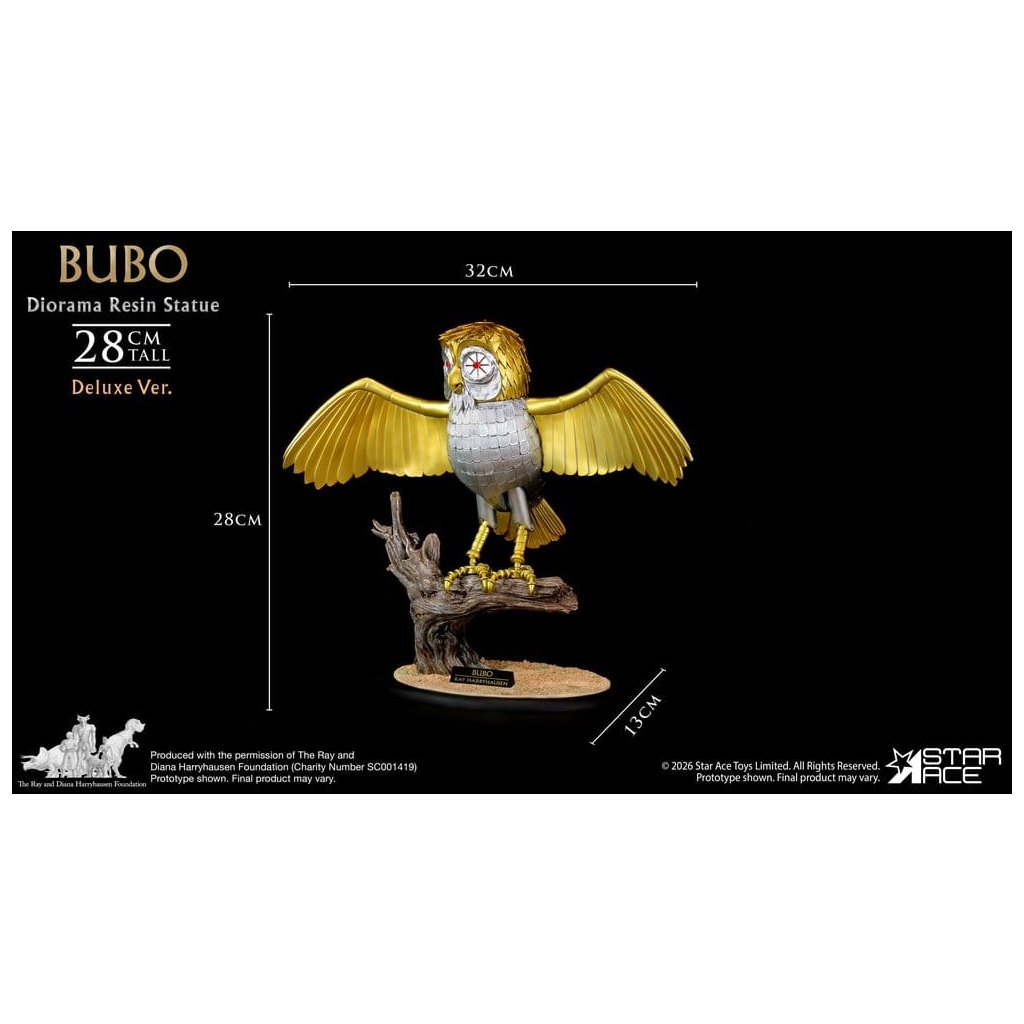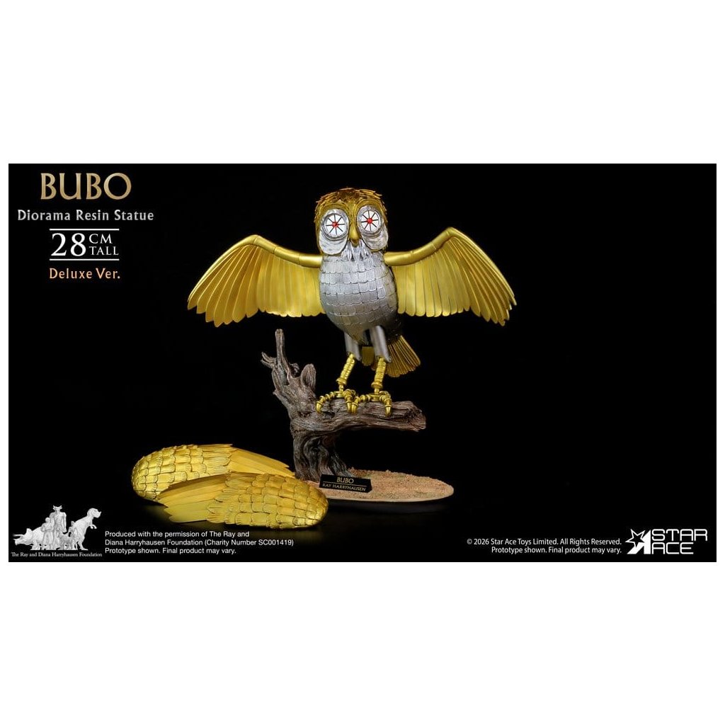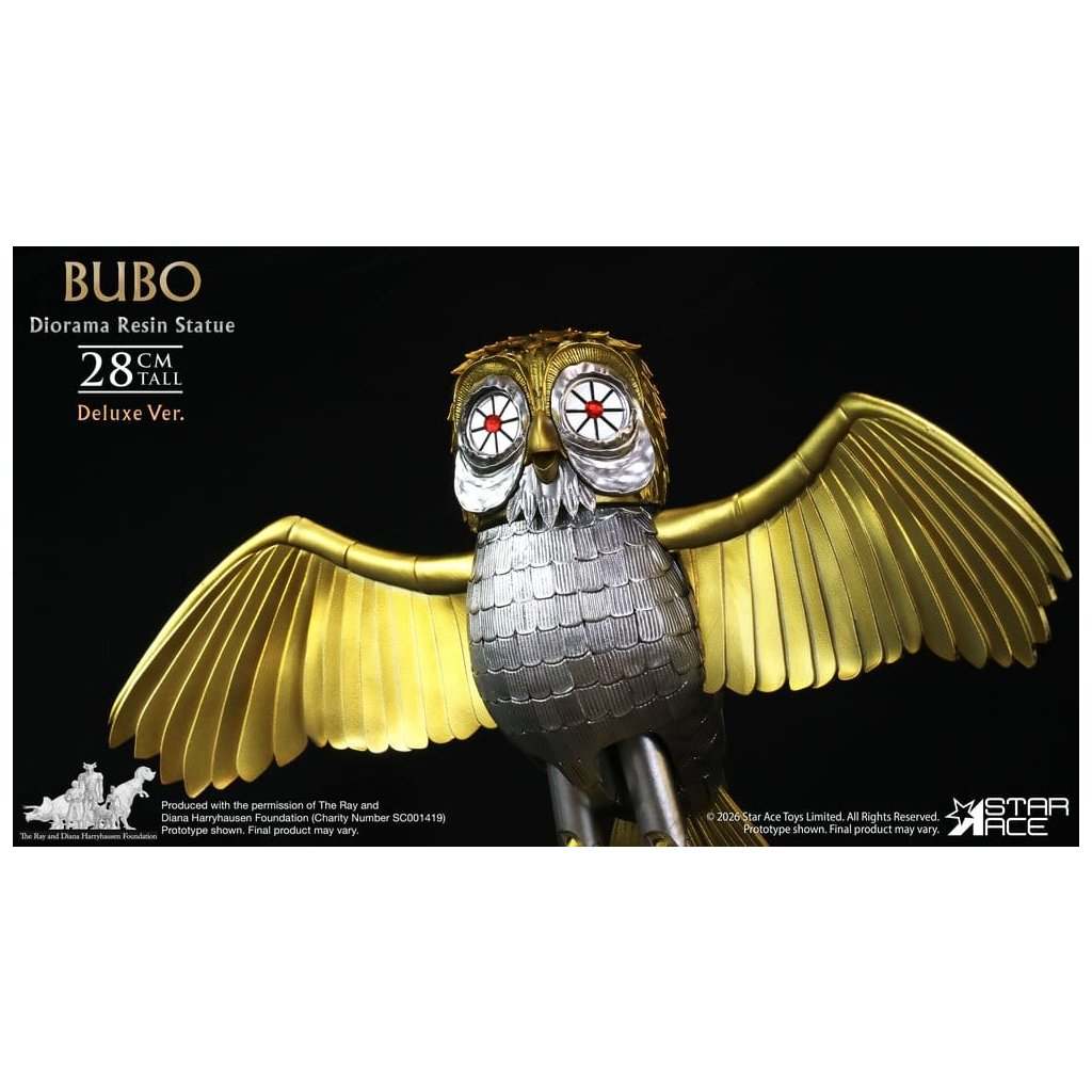 Studio Star Ace přináší deluxe verzi legendárního filmového tvora, kterého vytvořil mistr trikové animace Ray Harryhausen. Bubo – zlatá mechanická sova a věrný společník Persea – je zachycen v precizně propracovaném dioramatu inspirovaném posvátnými háji hory Olymp.