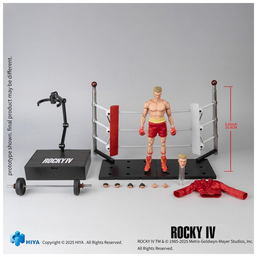 Legendární protivník z filmu Rocky IV (1985) přichází v podobě detailní 1/12 akční figurky z řady Hiya Toys EXQUISITE SUPER Series. Sovětský boxer Ivan Drago, proslulý svou neuvěřitelnou silou, chladnou přesností a ikonickým vzhledem, je nyní k dispozici v podobě vysoce kvalitní sběratelské figurky vysoké cca 16 cm.