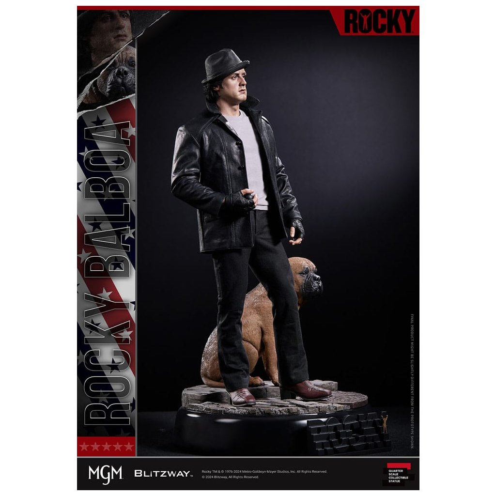 Ikonický boxer Rocky Balboa z legendárního filmu Rocky přichází v impozantním měřítku 1/4 jako luxusní sběratelská socha vysoká přibližně 54 cm. Společnost Blitzway zde vzdává hold jedné z nejdojemnějších filmových postav všech dob – a to včetně jeho věrného psa Butkuse.