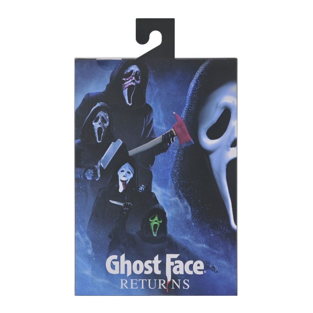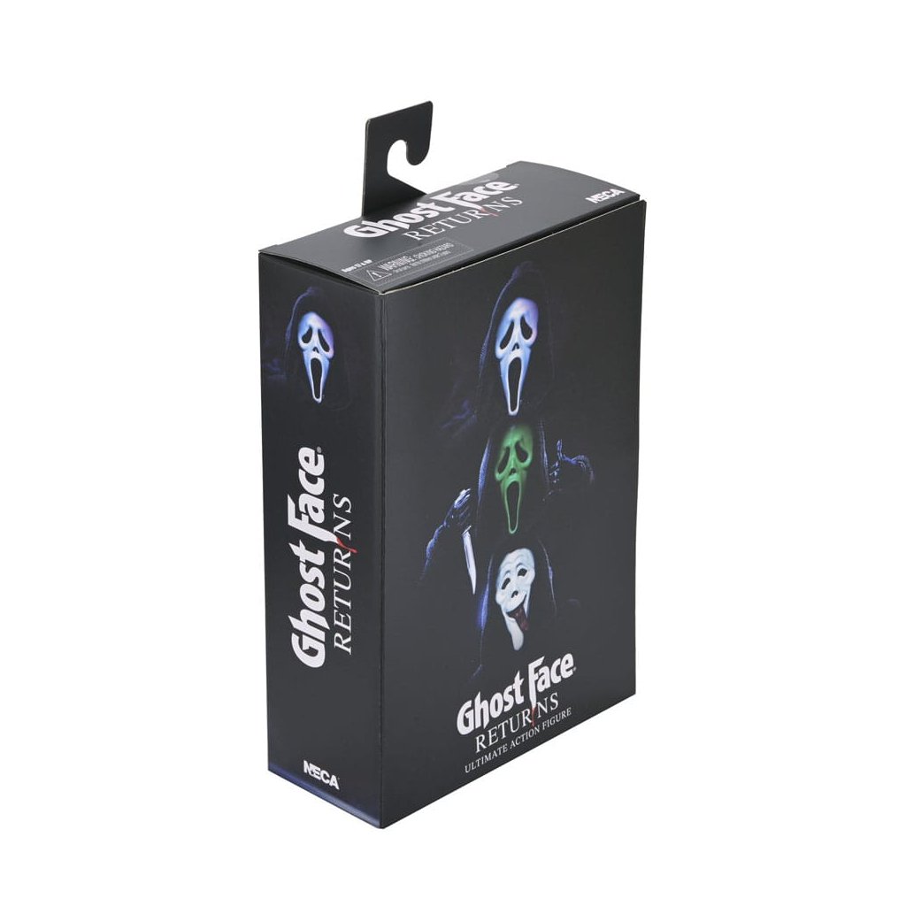 Verze Ultimate Ghost Face Returns přináší aktualizovanou kloubovatelnost, nové doplňky a několik variant masek, díky kterým si můžete vytvořit vlastní podobu tohoto kultovního slashera. Figurka je vybavena látkovým pláštěm inspirovaným exkluzivní verzí Ghost Face Takes Manhattan a nabízí široké možnosti pózování i vystavení.