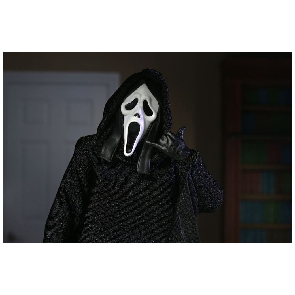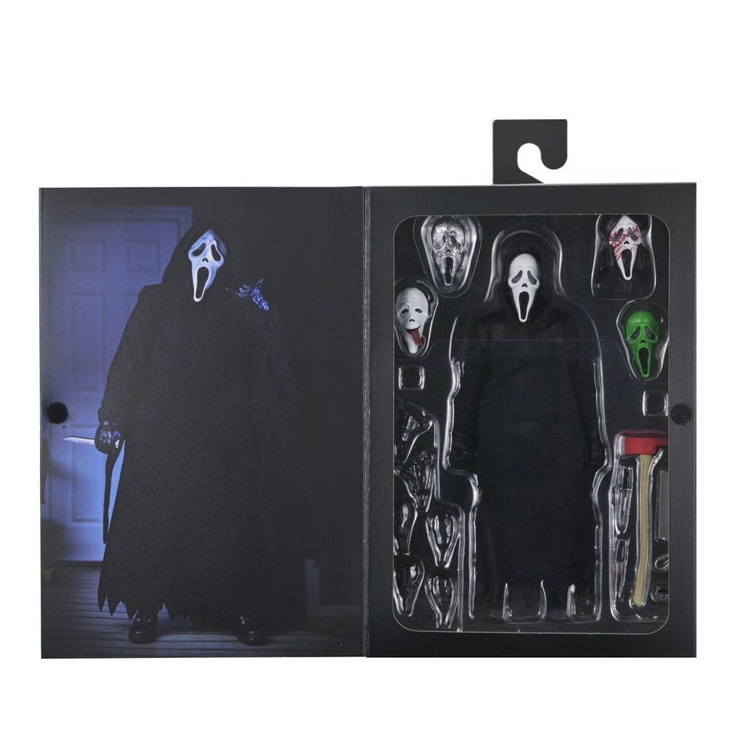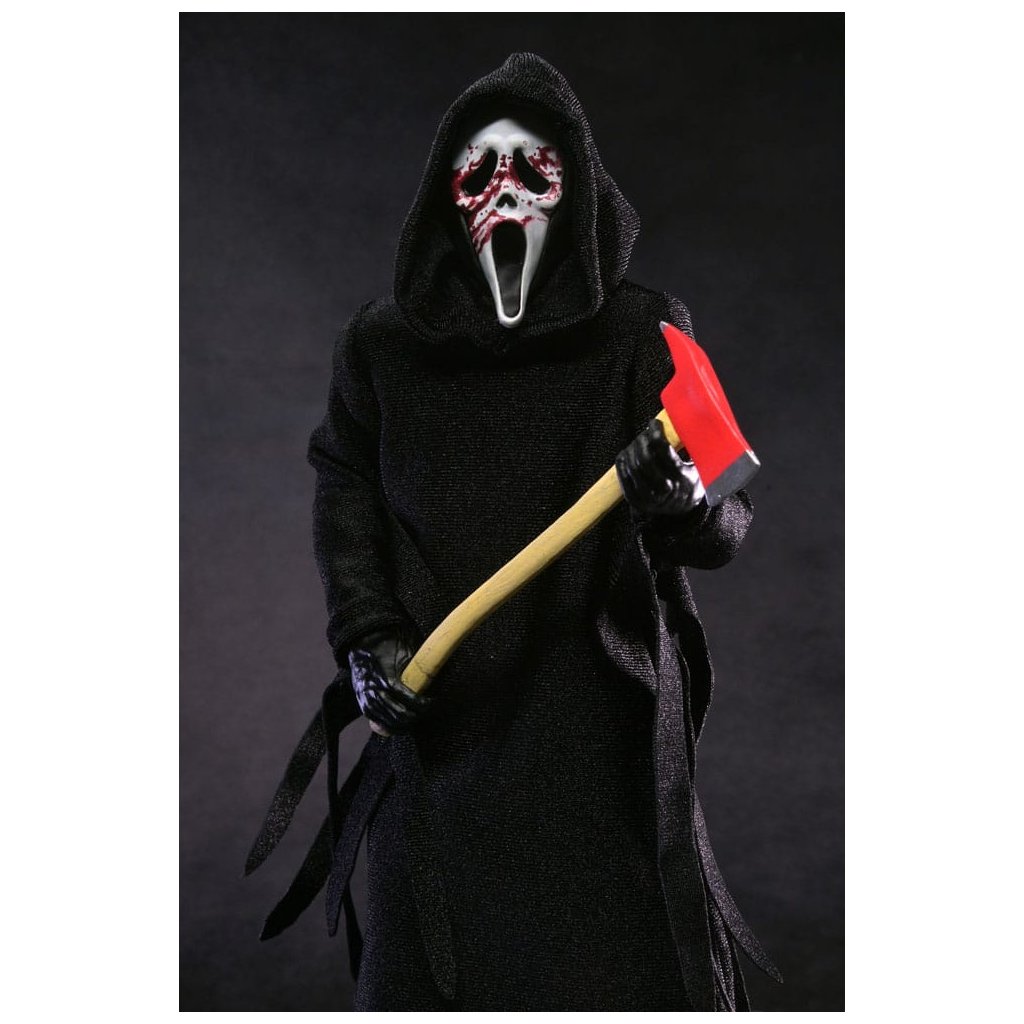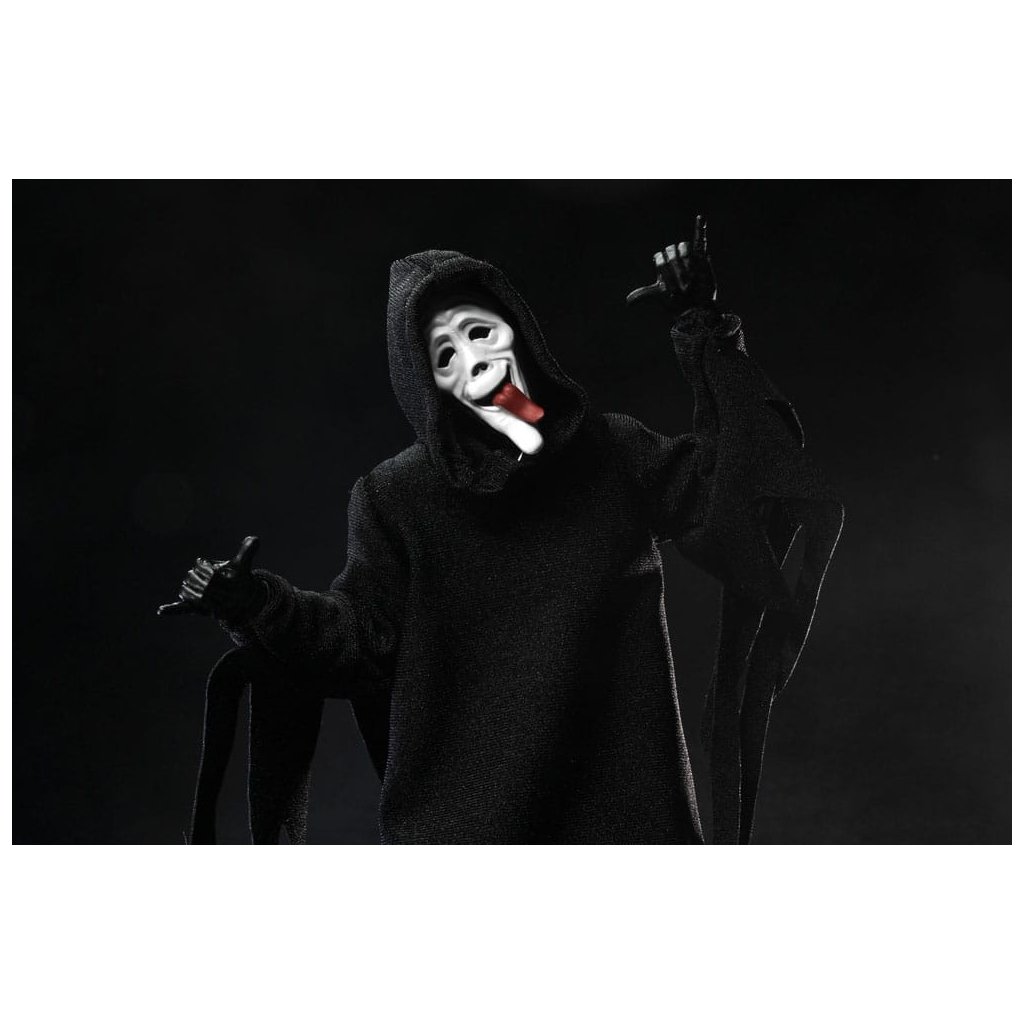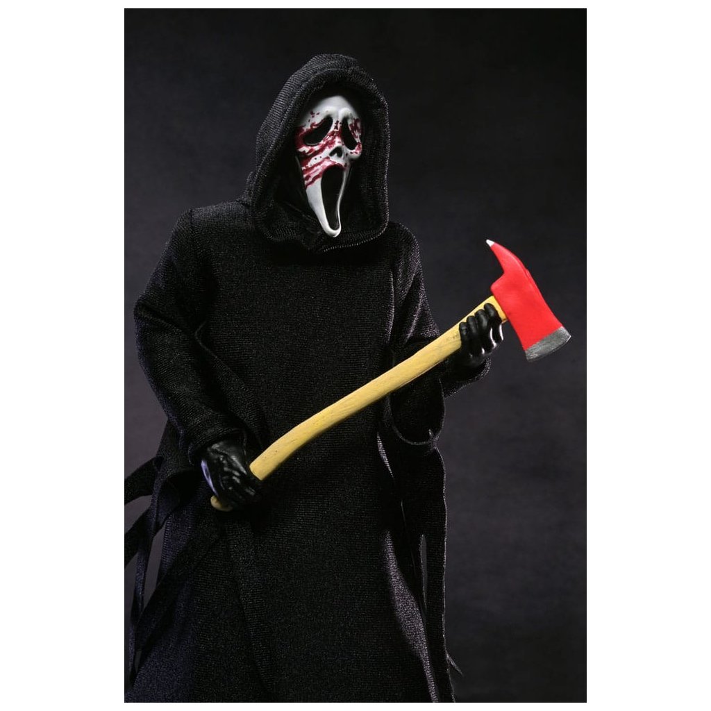 Legendární maskovaný vrah Ghostface se vrací v nové a ještě propracovanější verzi od NECA. Tato figurka vychází z ikonického kostýmu společnosti Fun World, který proslavila hororová série Scream.