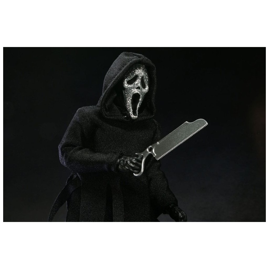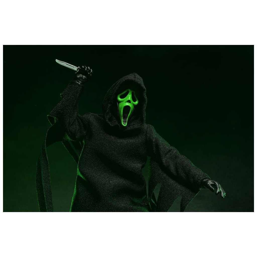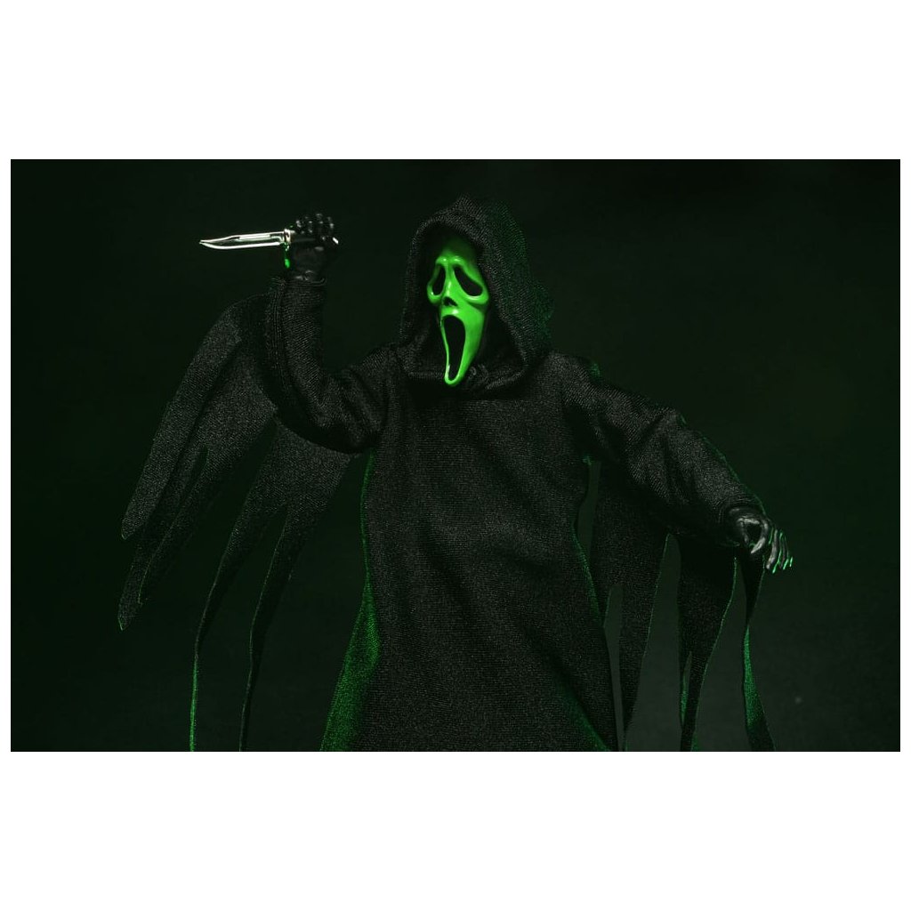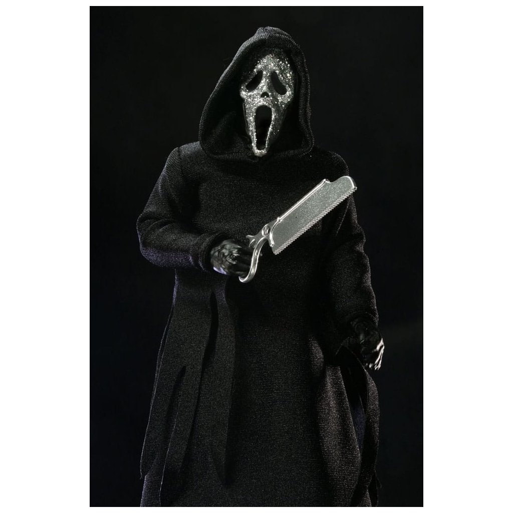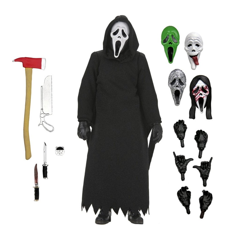 Legendární maskovaný vrah Ghostface se vrací v nové a ještě propracovanější verzi od NECA. Tato figurka vychází z ikonického kostýmu společnosti Fun World, který proslavila hororová série Scream.