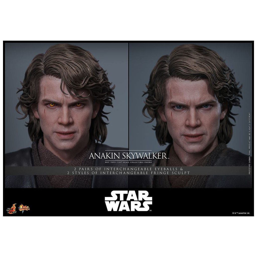Nový realistický portrét Anakina Skywalkera s vyměnitelnými očima – modré (Jedi) a žluté (Sith) duhovky a dvě varianty ofiny pro ikonické pózy.