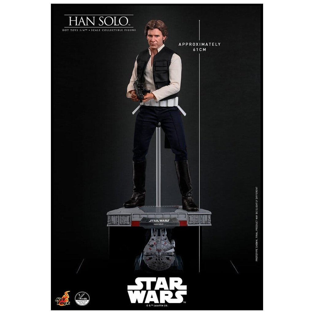 Společnosti Sideshow a Hot Toys představují impozantní quarter scale figurku Hana Sola inspirovanou jeho vzhledem ve filmu Star Wars: A New Hope. Tato téměř 46 cm vysoká sběratelská figura zachycuje podobu, kterou proslavil Harrison Ford, s mimořádnou věrností a důrazem na každý detail.