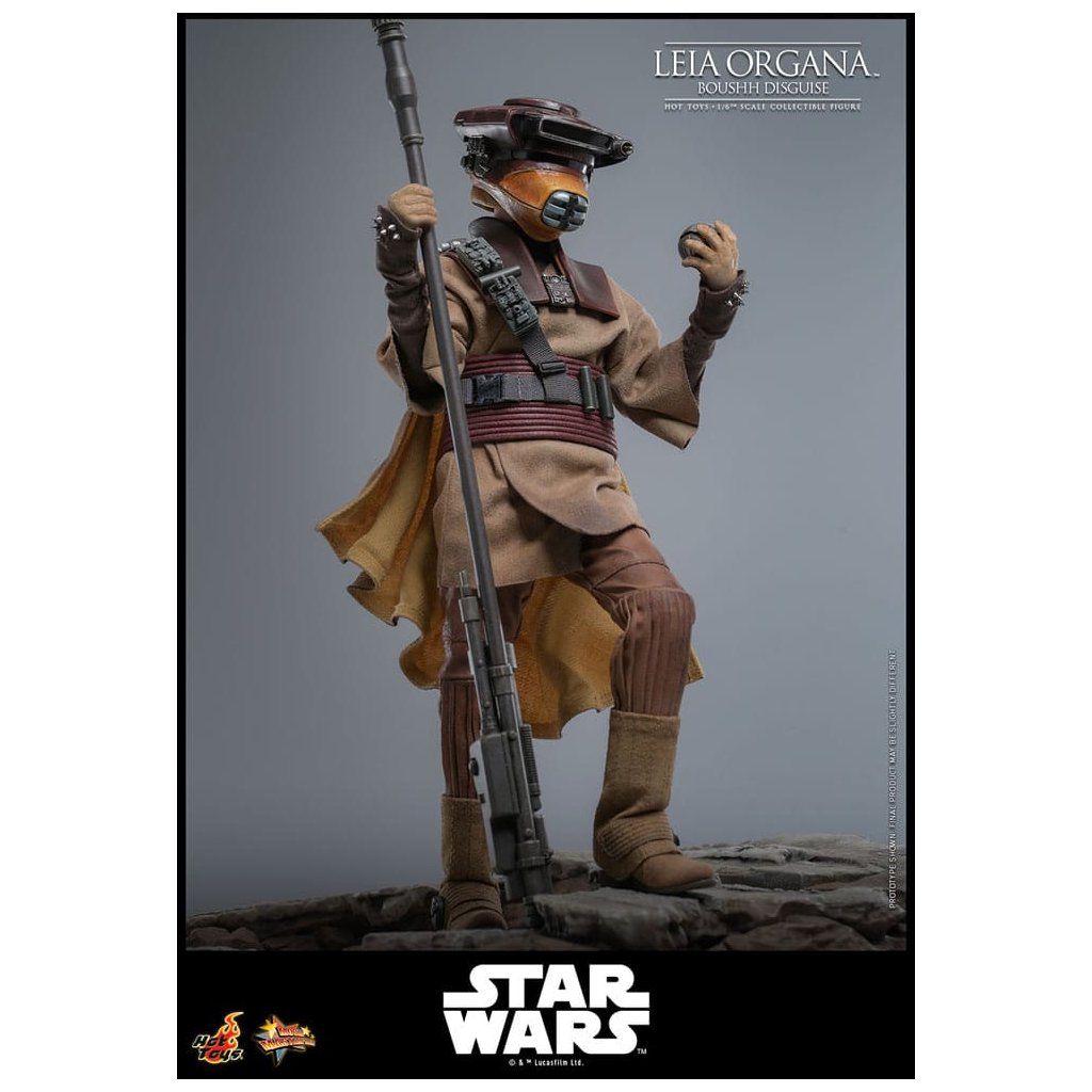 Princezna Leia se převléká za bounty huntera Boushh, aby tajně pronikla do paláce Jabby Hutta a zachránila Hana Sola. Pod odvážným kostýmem se skrývá neohrožená vůdkyně Rebelů, která kombinuje inteligenci, odvahu a strategické schopnosti – symbol síly a nezávislosti v galaxii.