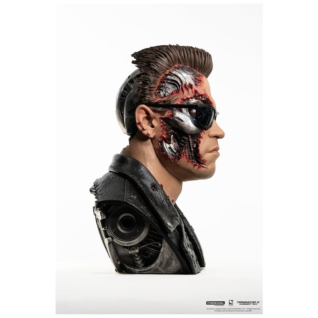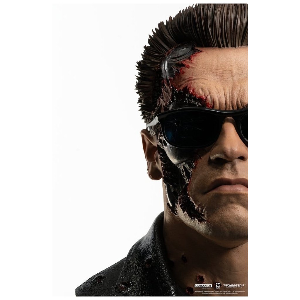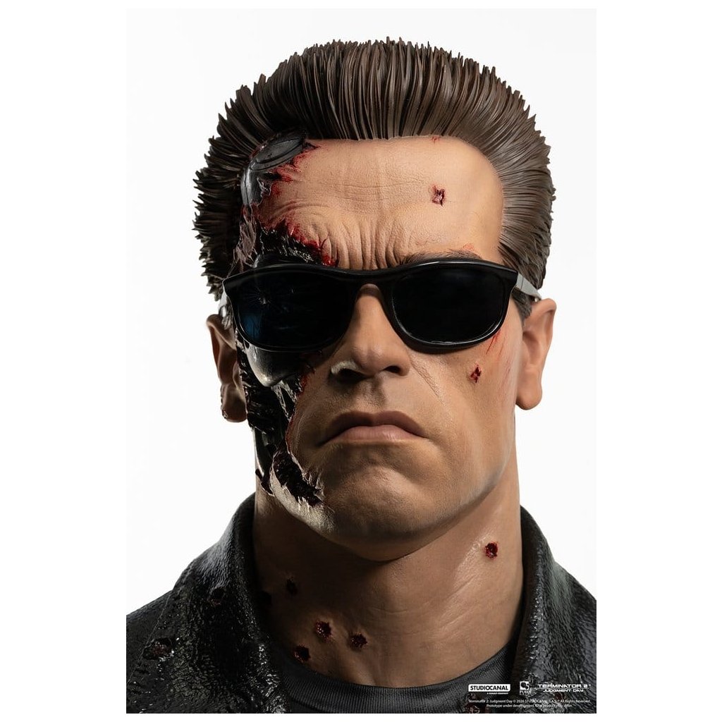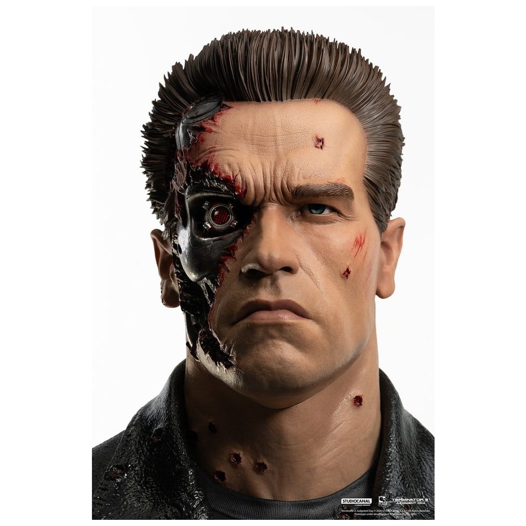T-800 Model 101 patří mezi nejikoničtější filmové postavy všech dob. V této poškozené verzi se stává symbolem neúnavného stroje, který pokračuje vpřed navzdory masivním zraněním. Odhalený endoskelet, prostřelená kůže, rozbité brýle a chladně zářící červené oko dokonale vystihují okamžik, kdy se z lovce stává nezastavitelná legenda sci-fi žánru.