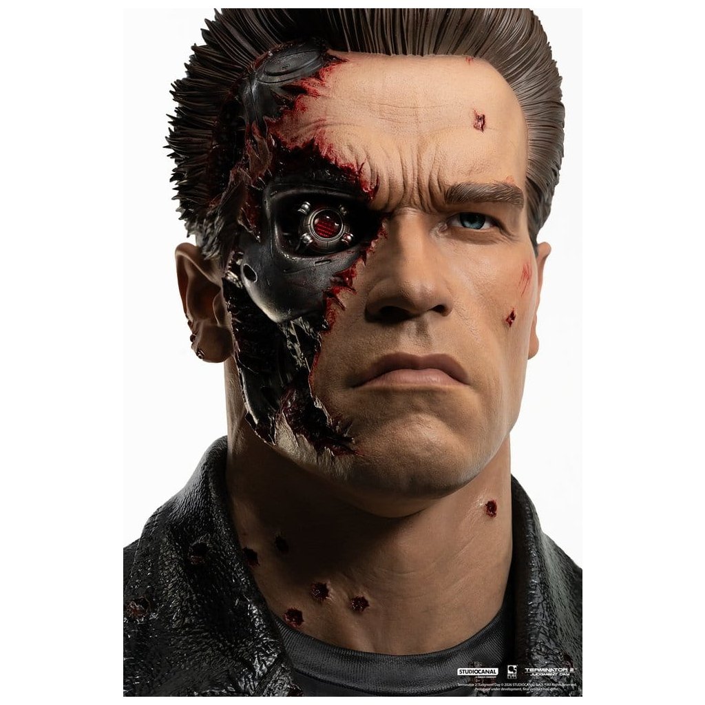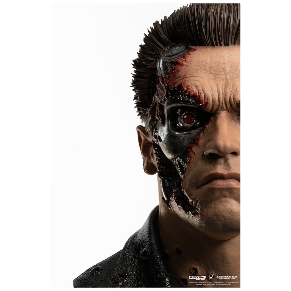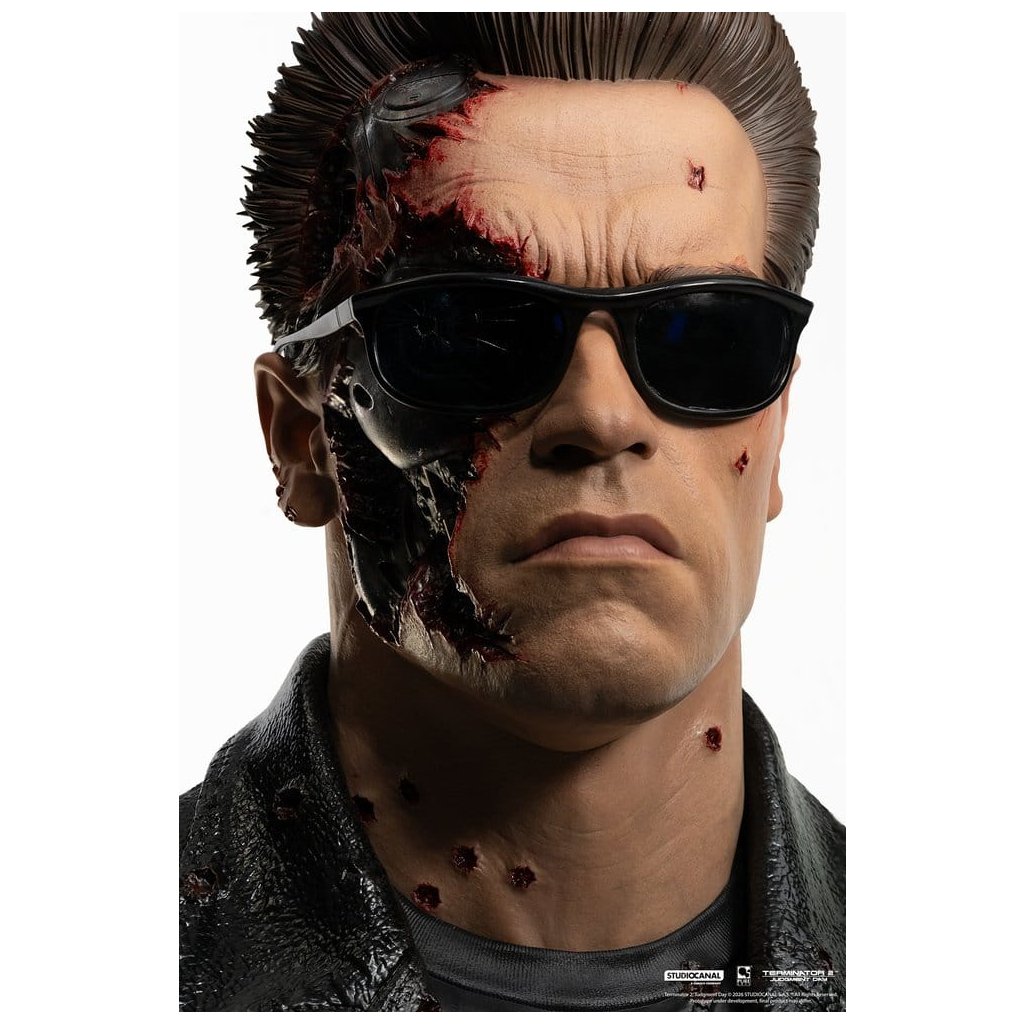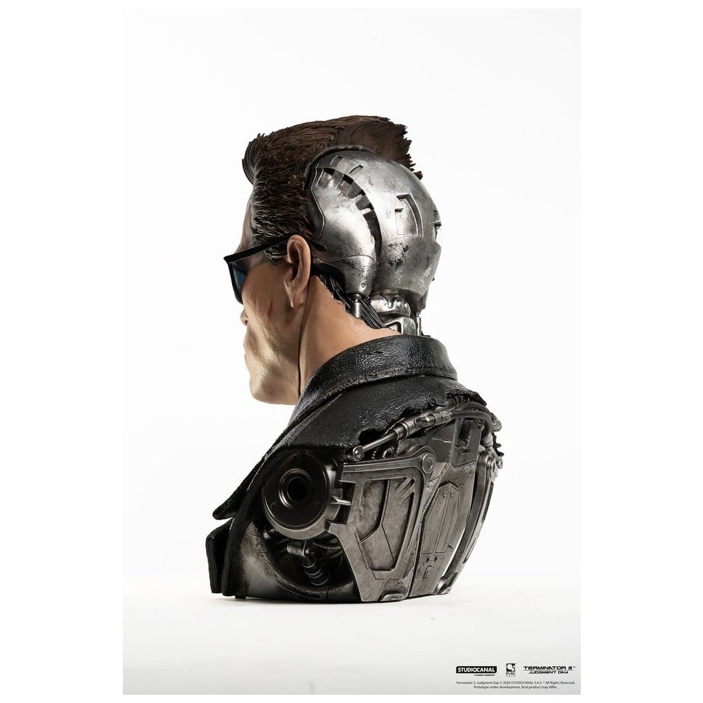 T-800 Model 101 patří mezi nejikoničtější filmové postavy všech dob. V této poškozené verzi se stává symbolem neúnavného stroje, který pokračuje vpřed navzdory masivním zraněním. Odhalený endoskelet, prostřelená kůže, rozbité brýle a chladně zářící červené oko dokonale vystihují okamžik, kdy se z lovce stává nezastavitelná legenda sci-fi žánru.