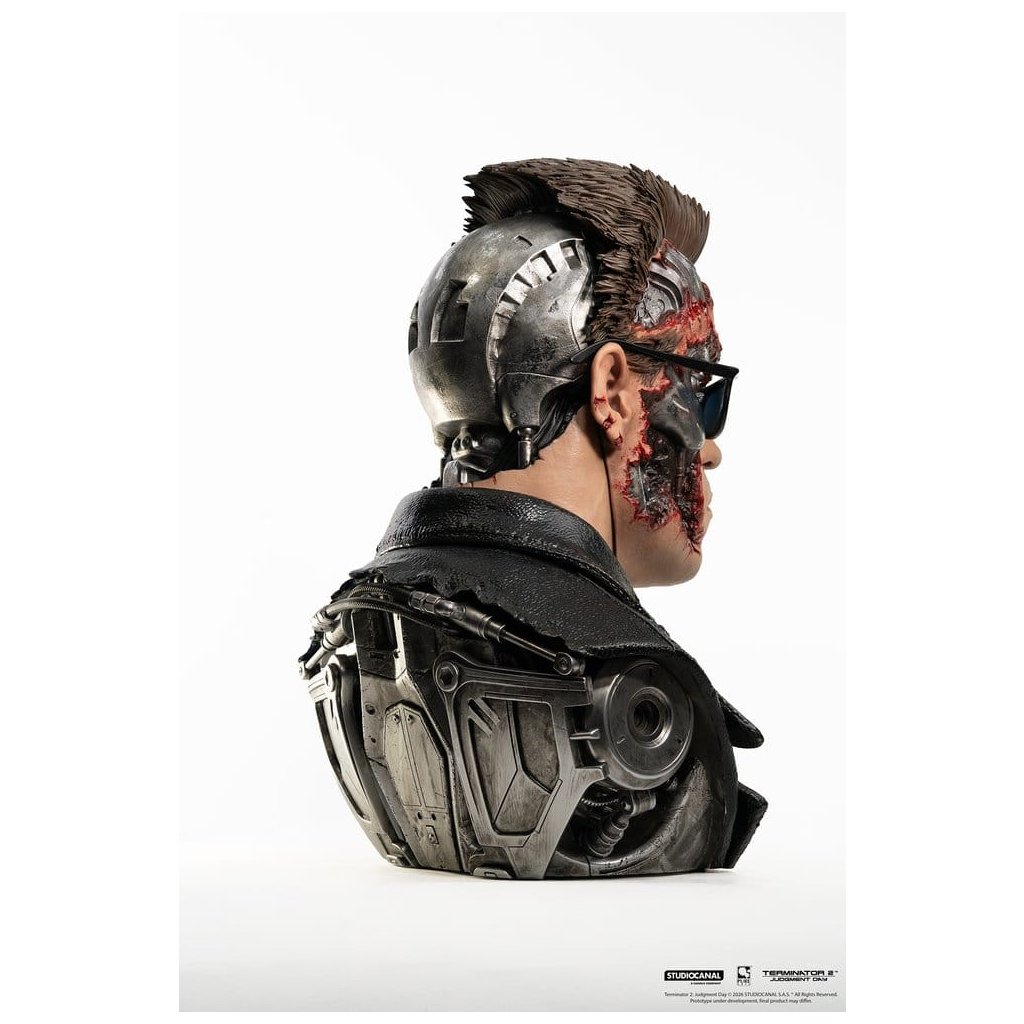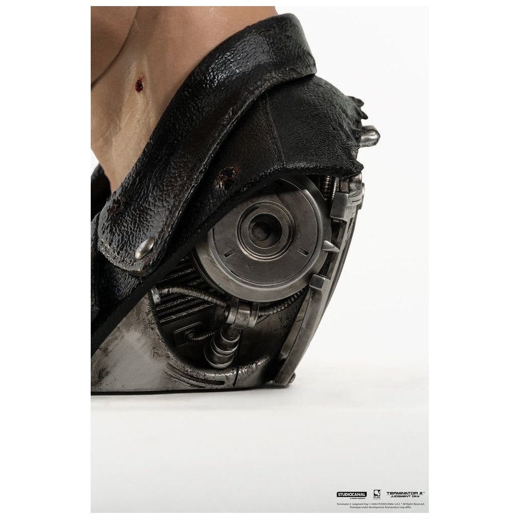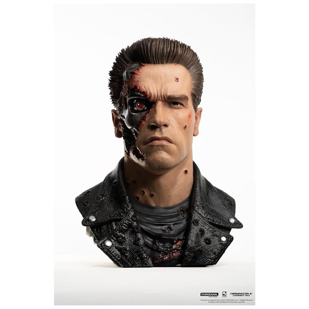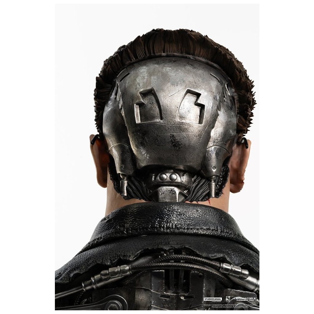 T-800 Model 101 patří mezi nejikoničtější filmové postavy všech dob. V této poškozené verzi se stává symbolem neúnavného stroje, který pokračuje vpřed navzdory masivním zraněním. Odhalený endoskelet, prostřelená kůže, rozbité brýle a chladně zářící červené oko dokonale vystihují okamžik, kdy se z lovce stává nezastavitelná legenda sci-fi žánru.