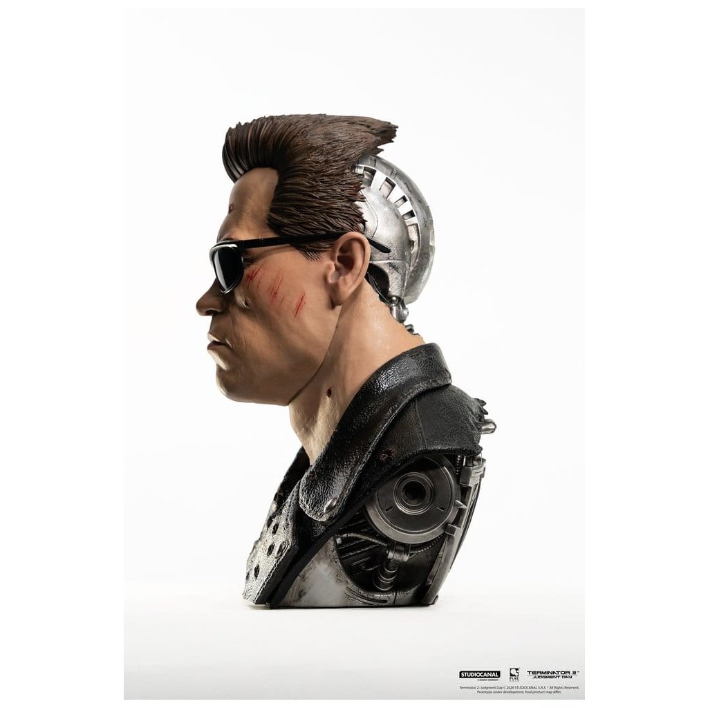 PureArts se vrací s ikonickou replikou T-800 Model 101 v edici Battle Damaged – v životní velikosti 1:1. Tato art maska zachycuje nekompromisní podobu kybernetického zabijáka, kterého ve filmu nezapomenutelně ztvárnil Arnold Schwarzenegger. Stržená syntetická kůže odhaluje lesklý endoskelet a vypráví příběh nelítostného boje až do posledního zásahu.