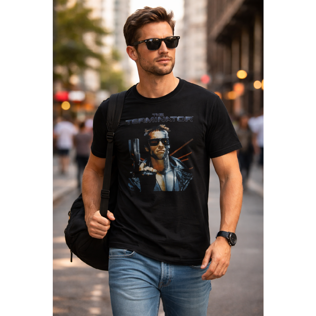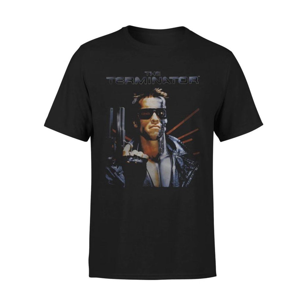 Stylové sci-fi tričko s motivem ikonického T-800 z filmu Terminátor (The Terminator) je přesně to, co váš šatník potřebuje. Dominantní barevná grafika s reprintem z plakátu k filmu a podobou Arnolda Schwarzeneggera jako T-800.