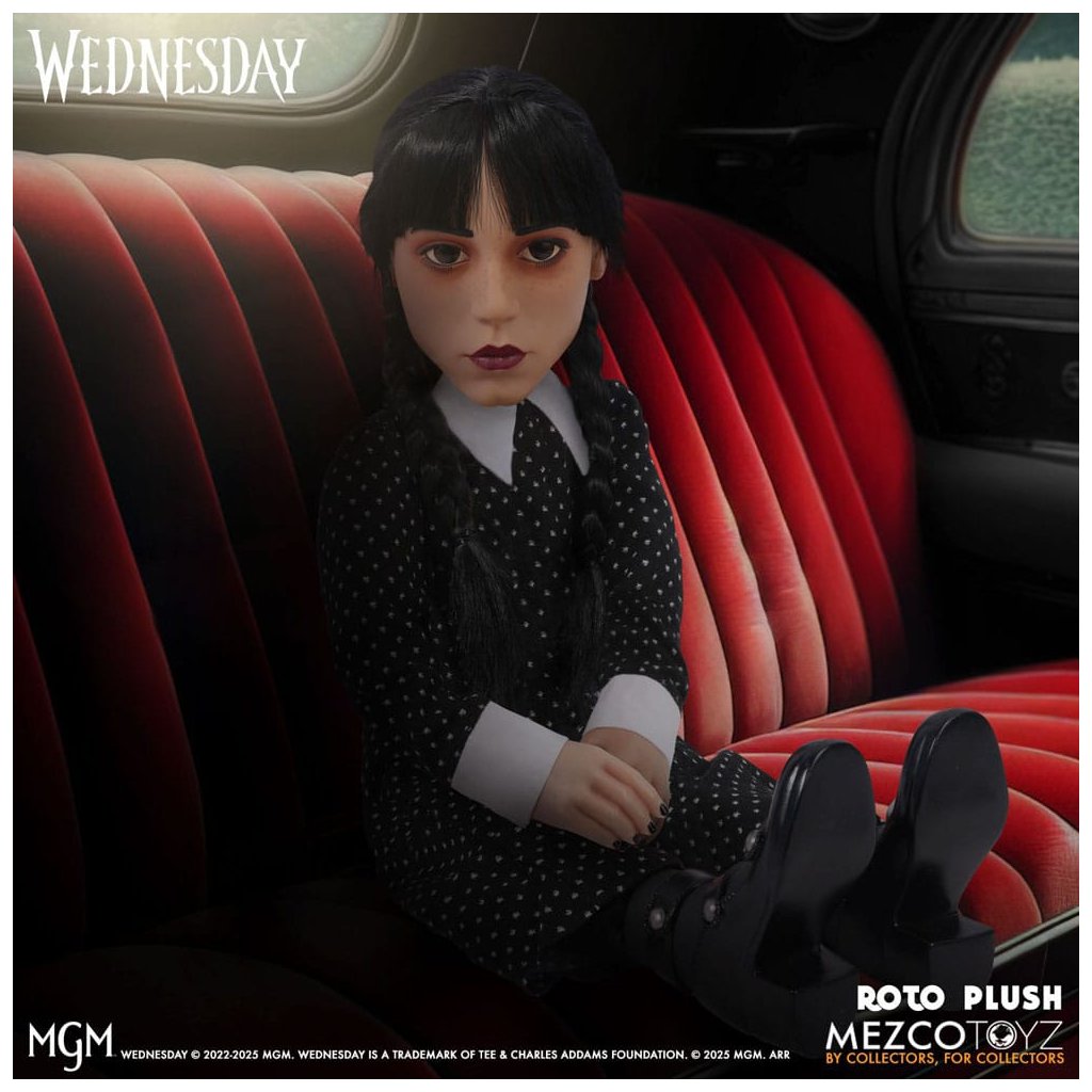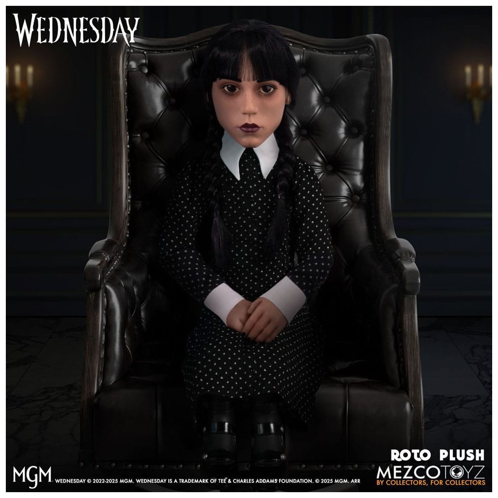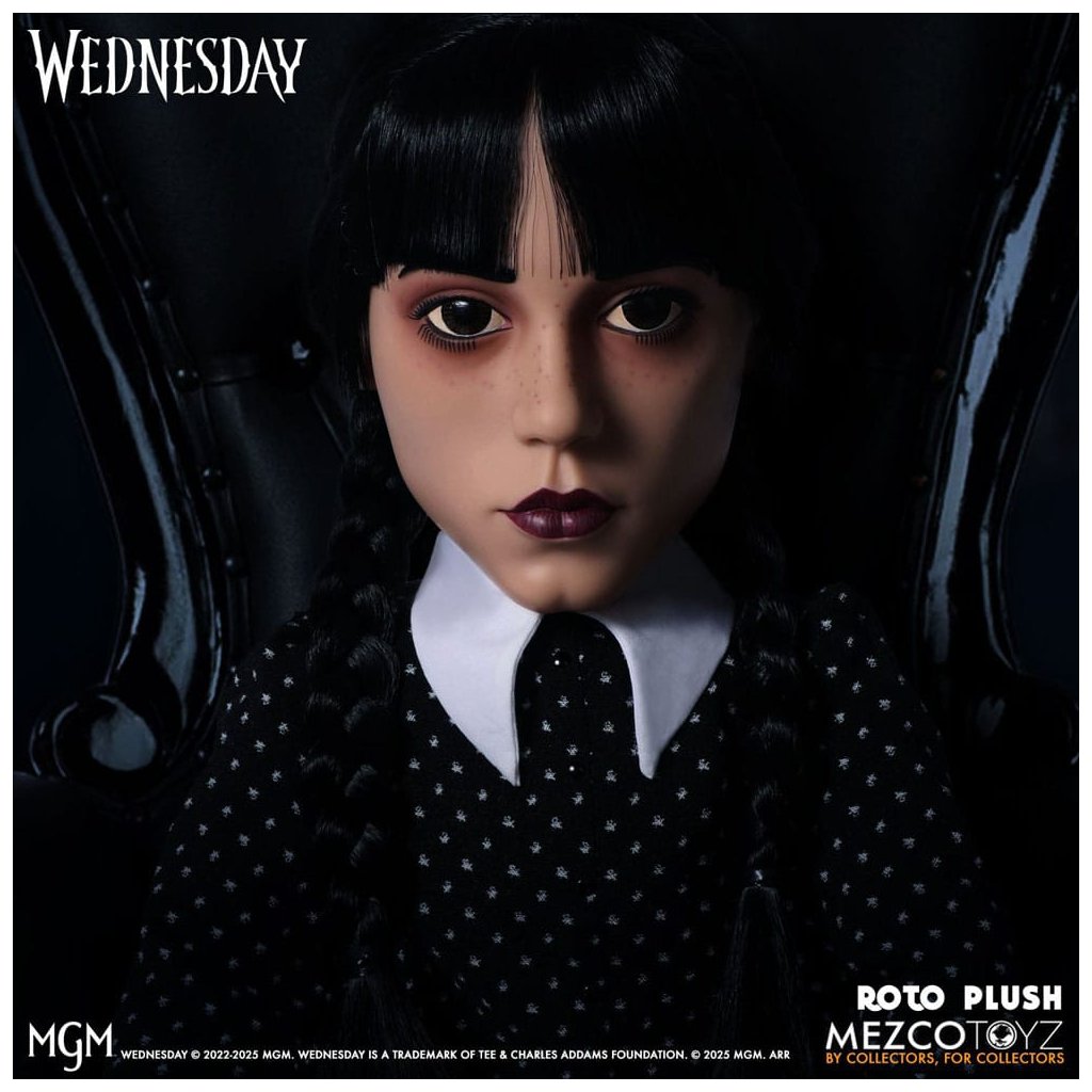 Temná, sarkastická a okouzlujícím způsobem morózní – tahle MDS Roto Plush figurka dokonale zachycuje ikonický vzhled a zlověstnou auru Wednesday.